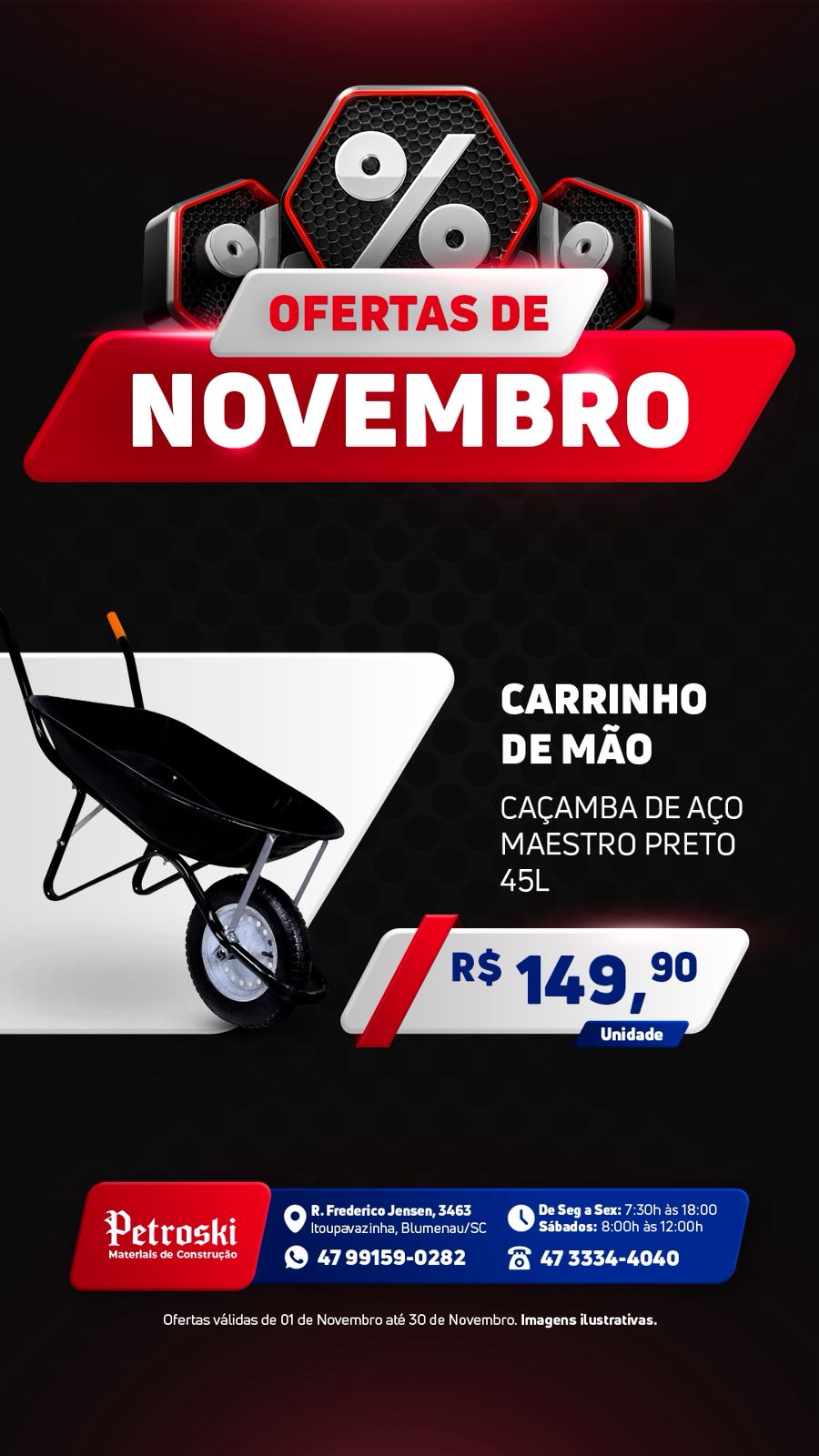 Você pode fazer seu orçamento ou seu pedido com muito mais rapidez e comodidade pelo nosso WhatsApp (47) 99159-0282.